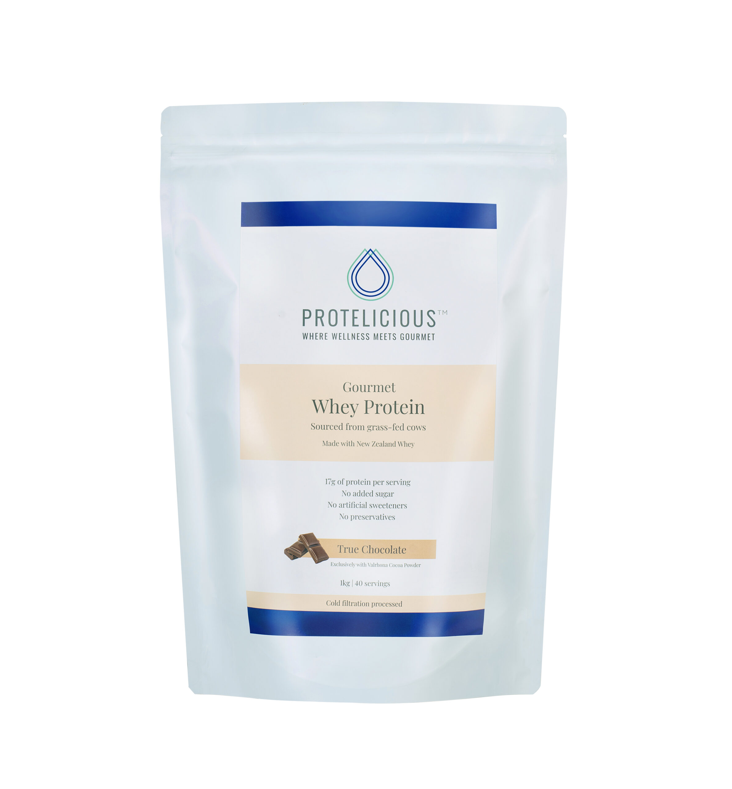 A chocolate whey protein blend made with 100% top quality Valrhona cocoa powder brings to mind the comfort of a mug of hot chocolate. With no added sugar or guilt, it’s a decadent treat that contributes to health. Whether you choose to mix it with coconut water or blend it with almond milk and peanut butter, we guarantee you’ll love this classic milk chocolate taste no matter what you do. Protelicious Chocolate Gourmet Whey Protein guarantees high-quality whey protein without sacrificing flavor.